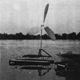 In 1966, AYRS held a model yacht competition at which this boat turned up, which sailed very fast upwind - in fact, I believe it ONLY sailed directly upwind. The person who brought it along was so shy that he disappeared before anybody had found out his name or address - but he was eventually traced and it turned out to be Philip Hansford. Well, he then went on to build record-breaking hydrofoils and seems to have given up on wind turbines.