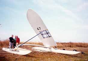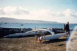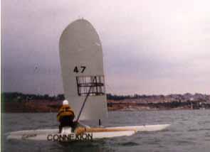 This was designed by Adrian Thompson for Peter Gardiner in 1983, as a contender for the speed record. A speed of 24.58 kt was recorded in 1983. In 1984, it was awarded a design prize