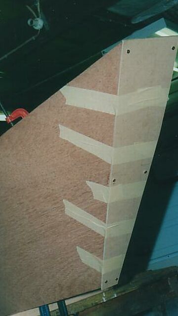 Photo 8 - Bow section taped to the sides of the hull at bow.