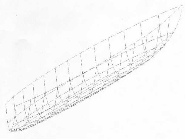 Photo 3 - perspective view of EllipseXcat (produced by my very old MSDOS version of HULLFORM)