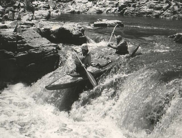 Photo 2 - Shoalhaven River, Bombay to Warri bridge 12 kms. My first Platypus, a slalom C2 developed by Rivers Canoe Club. Paul McKenzie up front.
