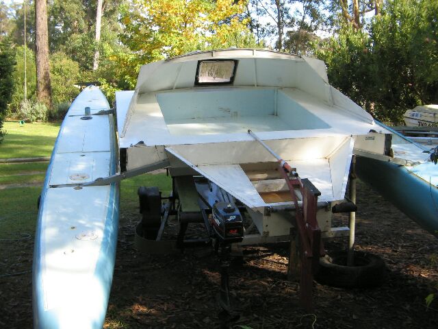 Photo 6 - Windriggercat 6800 as trialled Feb/march 2005, showing the new aft-cockpit.