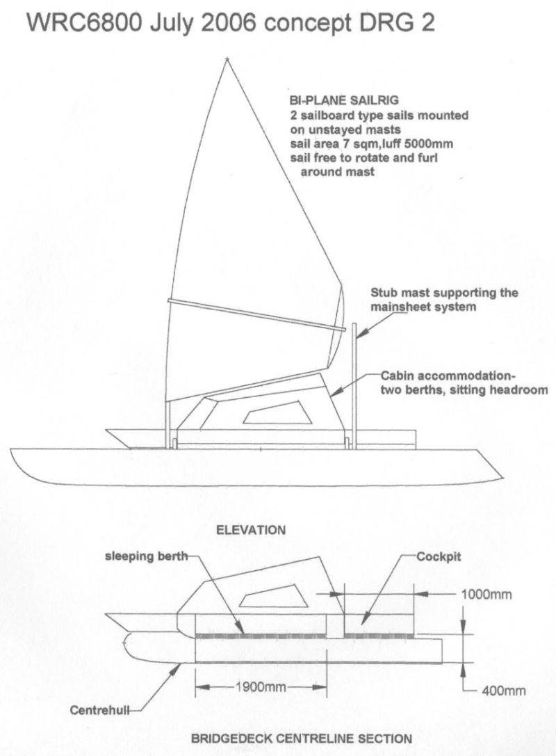 I have reached the stage with this project of wanting to finish it and just go sailing. So I have decided to limit experimentation to developing comfortable on-board accommodation for the WRC6800 catamaran.