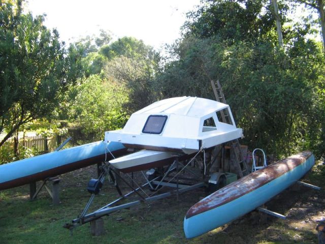 Ultimately I intend to add a cockpit over the aft end of the centrehull and enclose the aft end of the cabin for sleep- onboard accommodation.