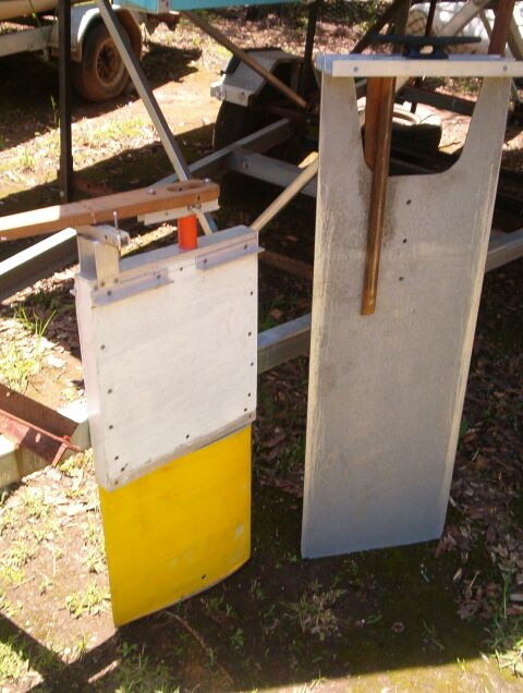 PHOTO 2 - Steerable yellow-centreboard and the self-tacking aluminium centreplate which was successfully trialled on WRC6800 during year 2003 - published in the Dec 2004 Instalment.