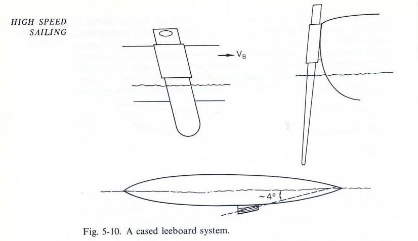 The system would be very like that shown in Fig 5-10 except that the cases will be mounted with zero leeway angle and the bottom of the leeboards will consist of a spade rudder.