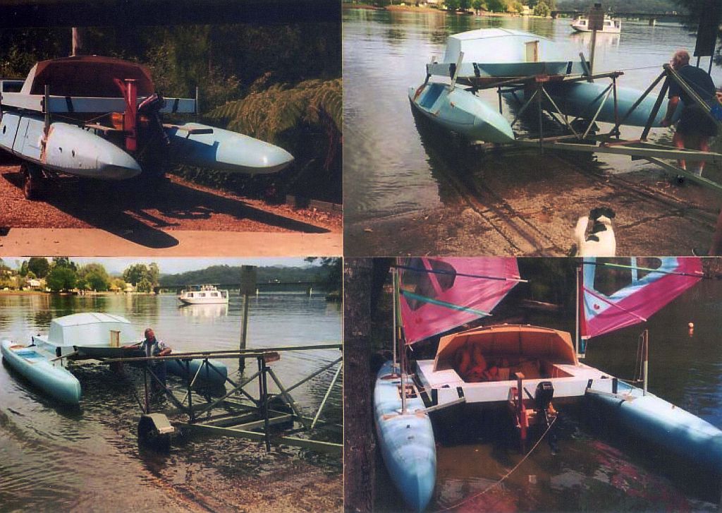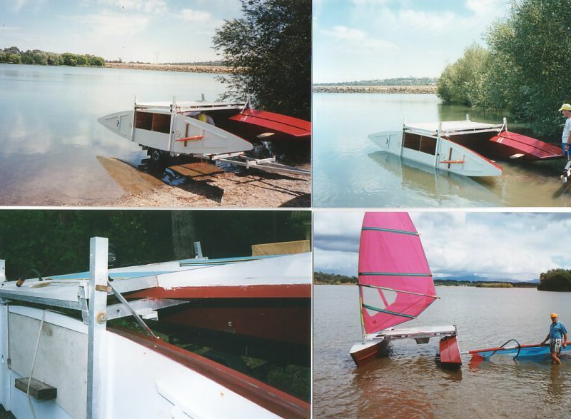 I class my beamchange systems as the best outcome of this project. It simply increases the beam of my catamarans from 2500mm to 3800mm and provides a tremendous improvement in sailing, comfort and safety. Details of it are included below and photos of my l beach-launching trailer.