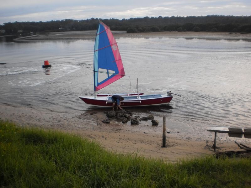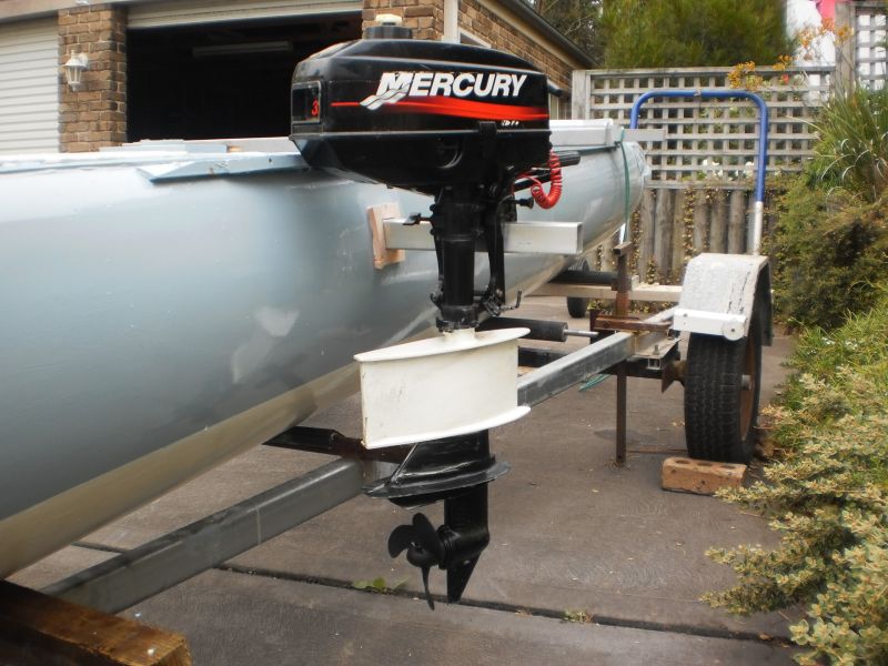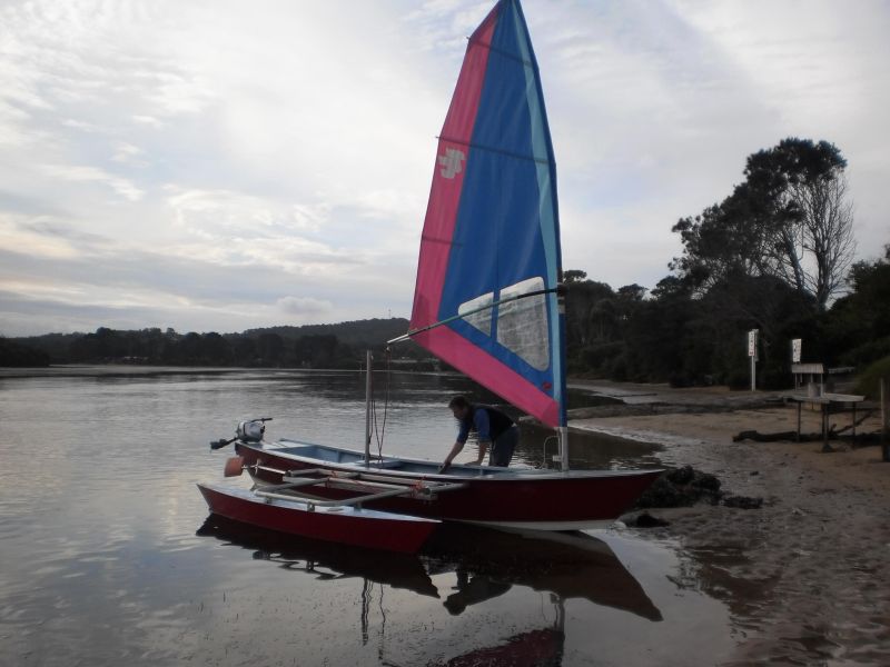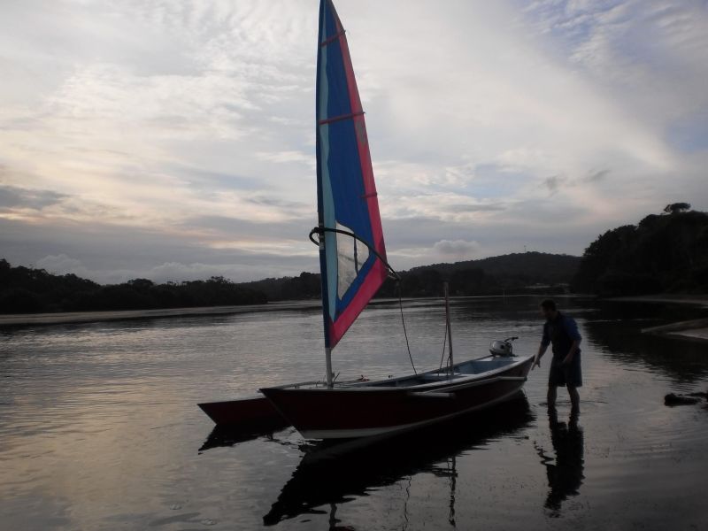 Photo 4 - First launch, no wind. 5 knots speed with a Honda 2 hp outboard.