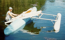 The following photos illustrate mechanical features of the capsize recovery arrangement incorporated in Windrigger MK 2 non-reversible proa. Mark Bennett is in the water.